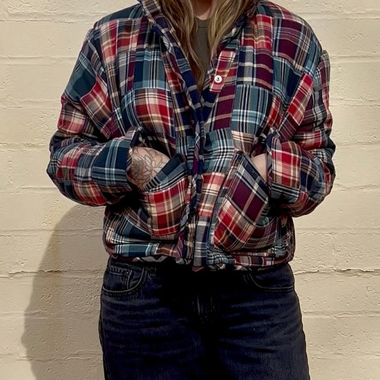 This coat is made from a reclaimed Ralph Lauren comforter. It’s lofty, warm, and substantial — the kind of insulation you feel immediately when you put it on.
